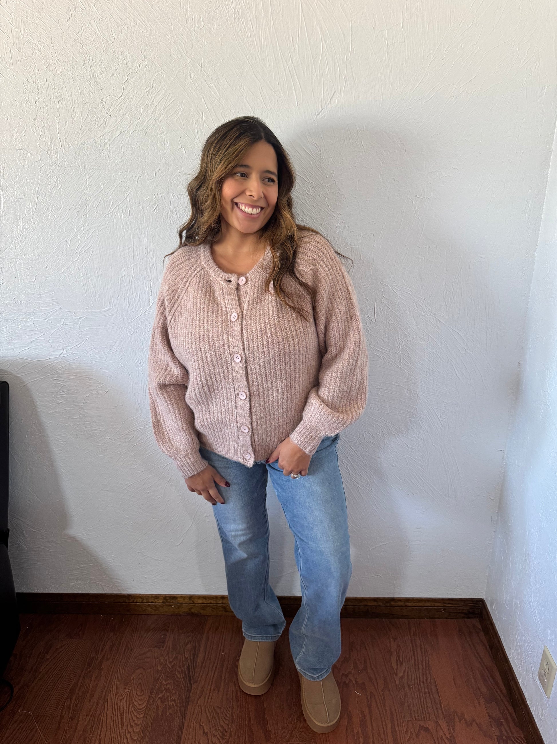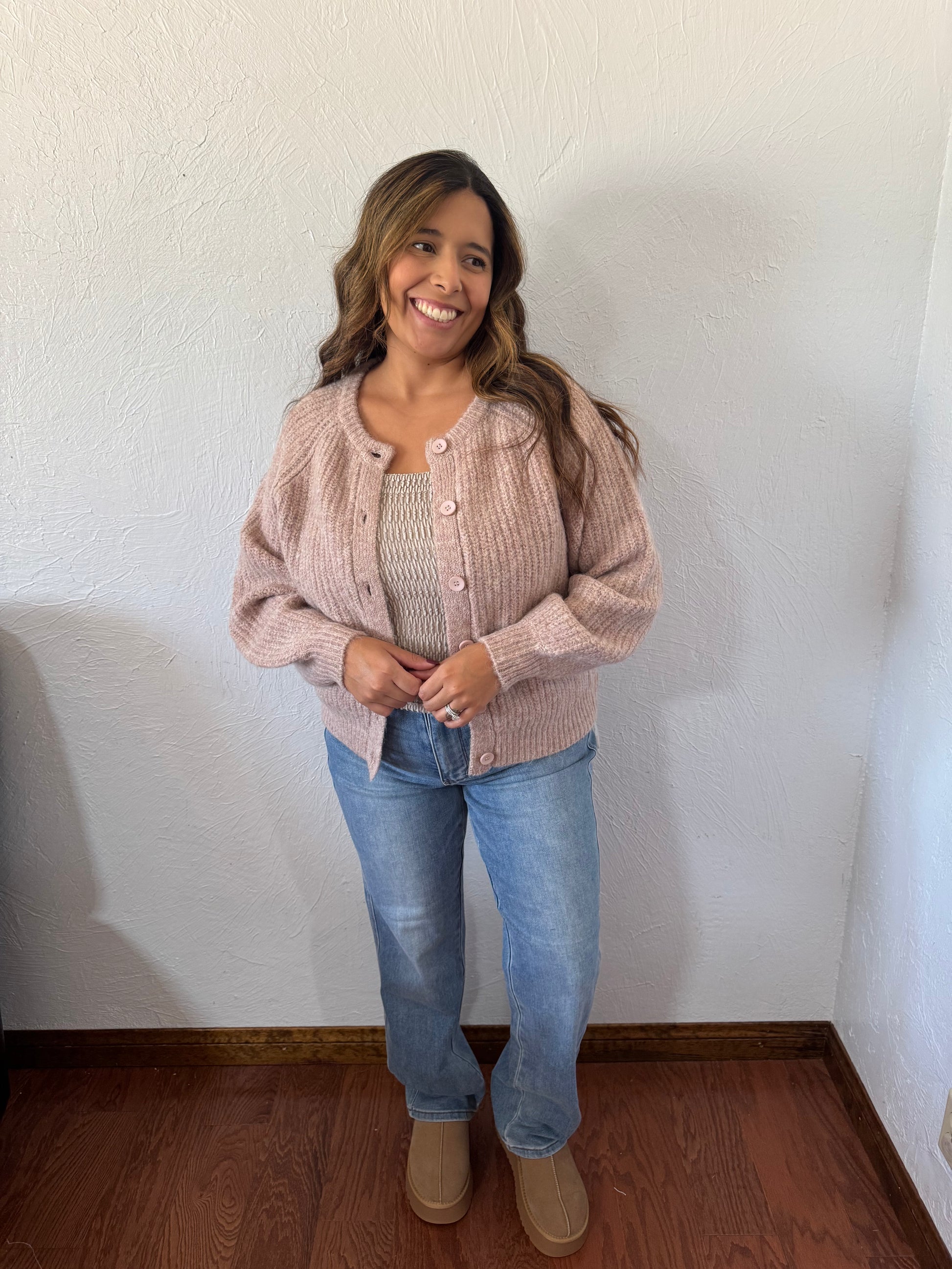 The cutest rosewater pink cardigan for the winter. She's medium weighted knit cardigan that is so cozy. Obsessed with her and the fit. Great for the work girlies and teacher friends bringing that soft pink through fall.