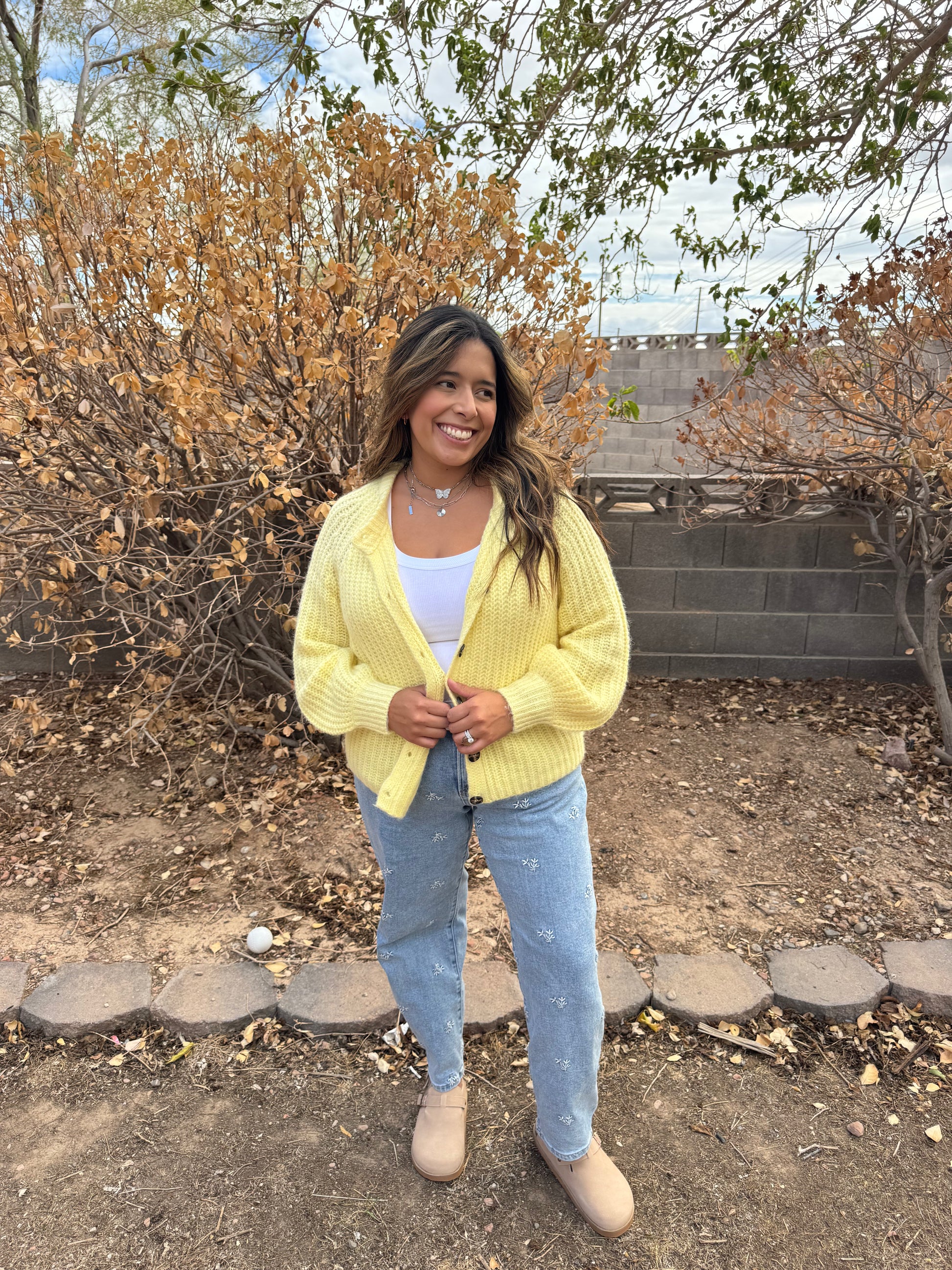 The perfect cardigan to take you through fall and spring. She is the softest knit material you are going to get! She has a relaxed fit, chunky buttons and perfect to layer!